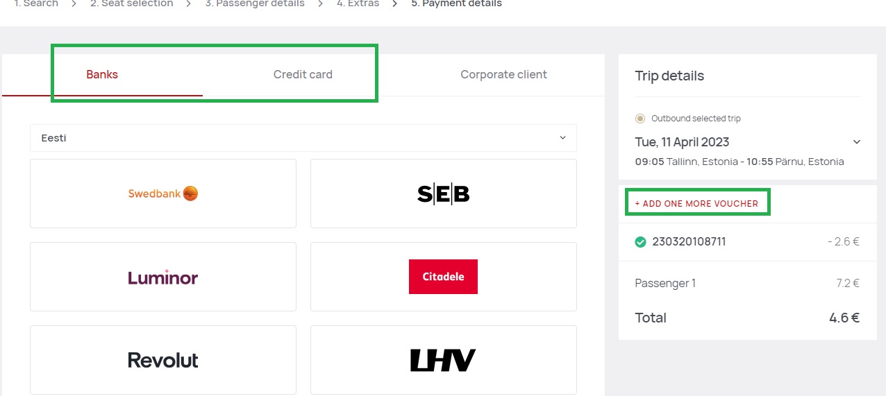 If you need to pay more, you can do it either with a bank link, credit card or by adding another voucher: