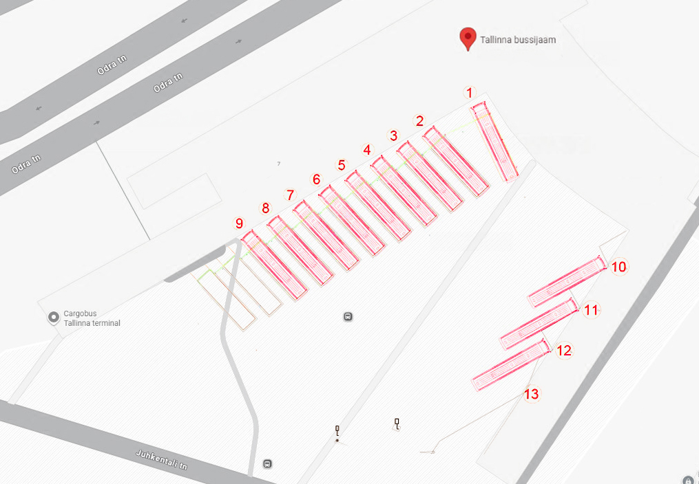 Kõige täpsem väljumisplatvormi info on alati nähtav Tallinna Bussijaama infoekraanidel vahetult enne väljumist.