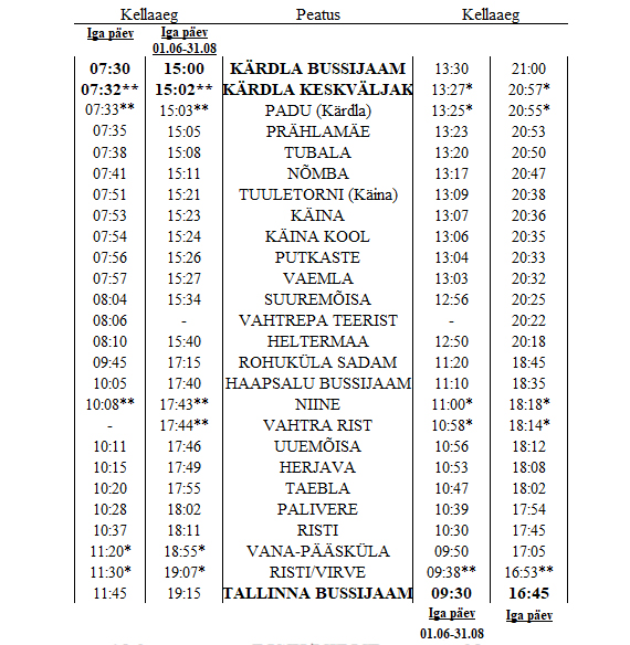 Alates 1. juunist jõustuvad muudatused Lux Expressi Tallinn-Kärdla bussiliinil. Et tagada sujuvam ja rahulikum praamile jõudmine, hakkab senine Tallinnast kell 16.50 väljunud reis alustama teekonda viis minutit varem – kell 16.45.