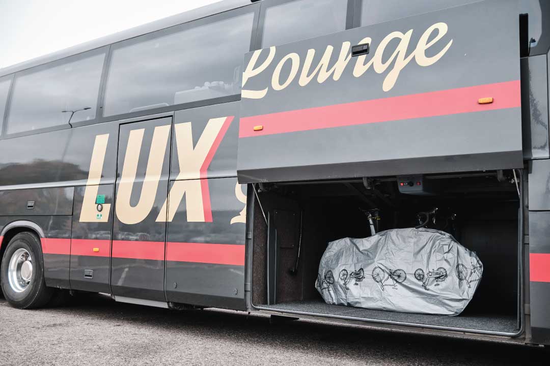 Для того чтобы обеспечить сохранность велосипеда и другого багажа, велосипед должен быть упакован в защитный чехол, который предоставляется в автобусе.