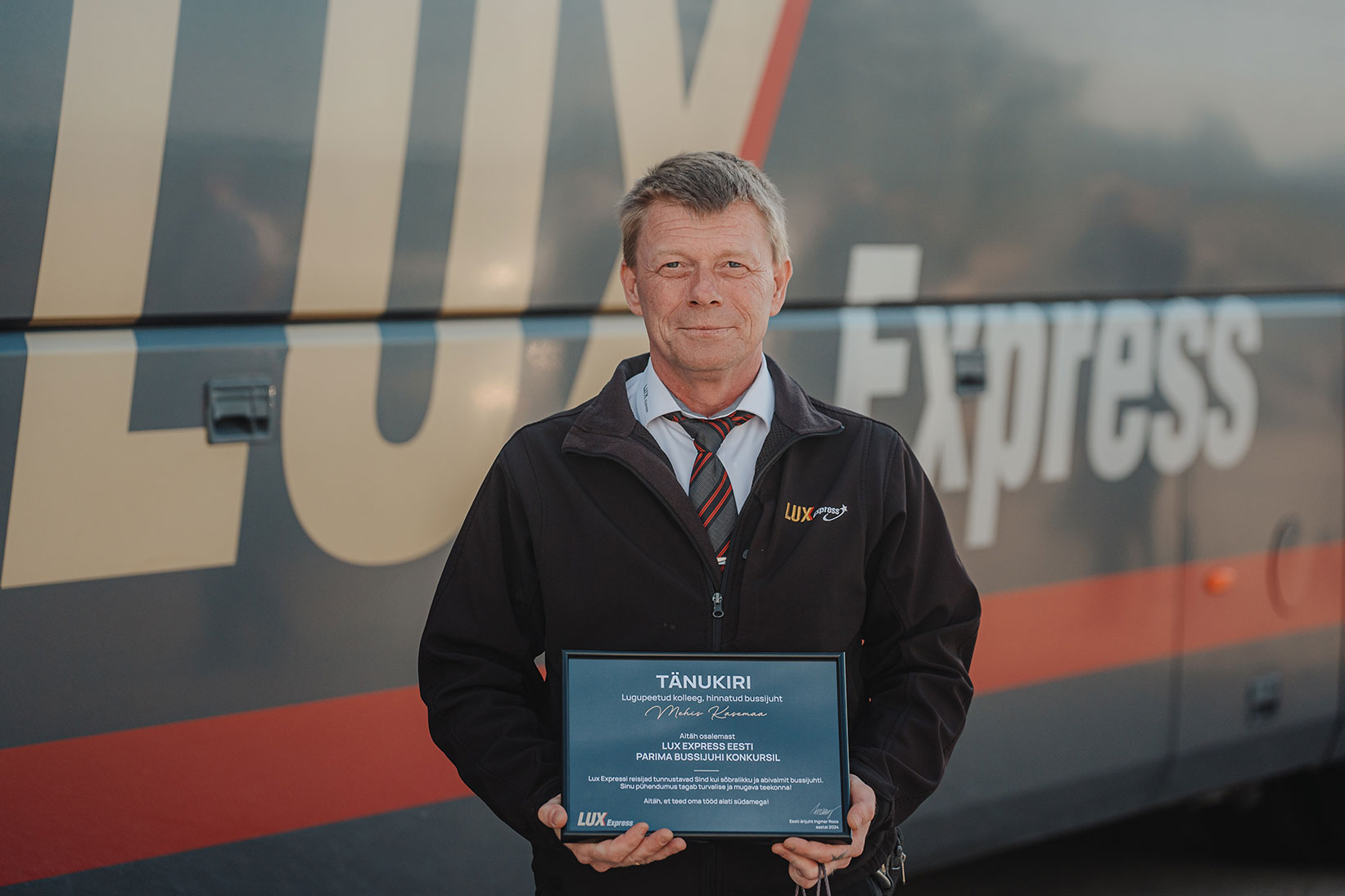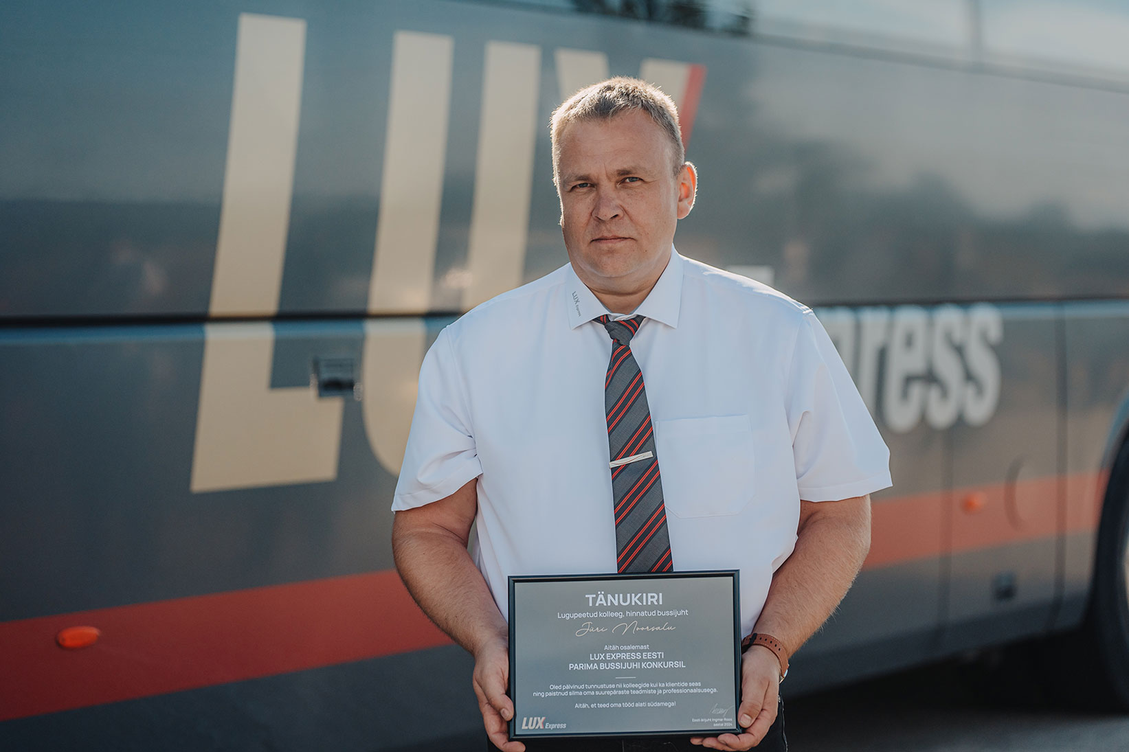 Jüri Noorsalu on Lux Expressis töötanud pea 2 aastat. Ta omab 25-aastast autojuhi staaži, millest 20 aastat on ta tegutsenud bussijuhina. Tema sõnul pole bussijuhi töö enam pelgalt amet, vaid pigem elustiil. Jüri saavutas teenindusoskuse kategoorias esikoha ning jõudis parimate hulka nii teoreetiliste teadmiste testis kui ka kolleegide hinnangutes. Kokkuvõttes krooniti ta tiitliga "Parim Bussijuht 2024".