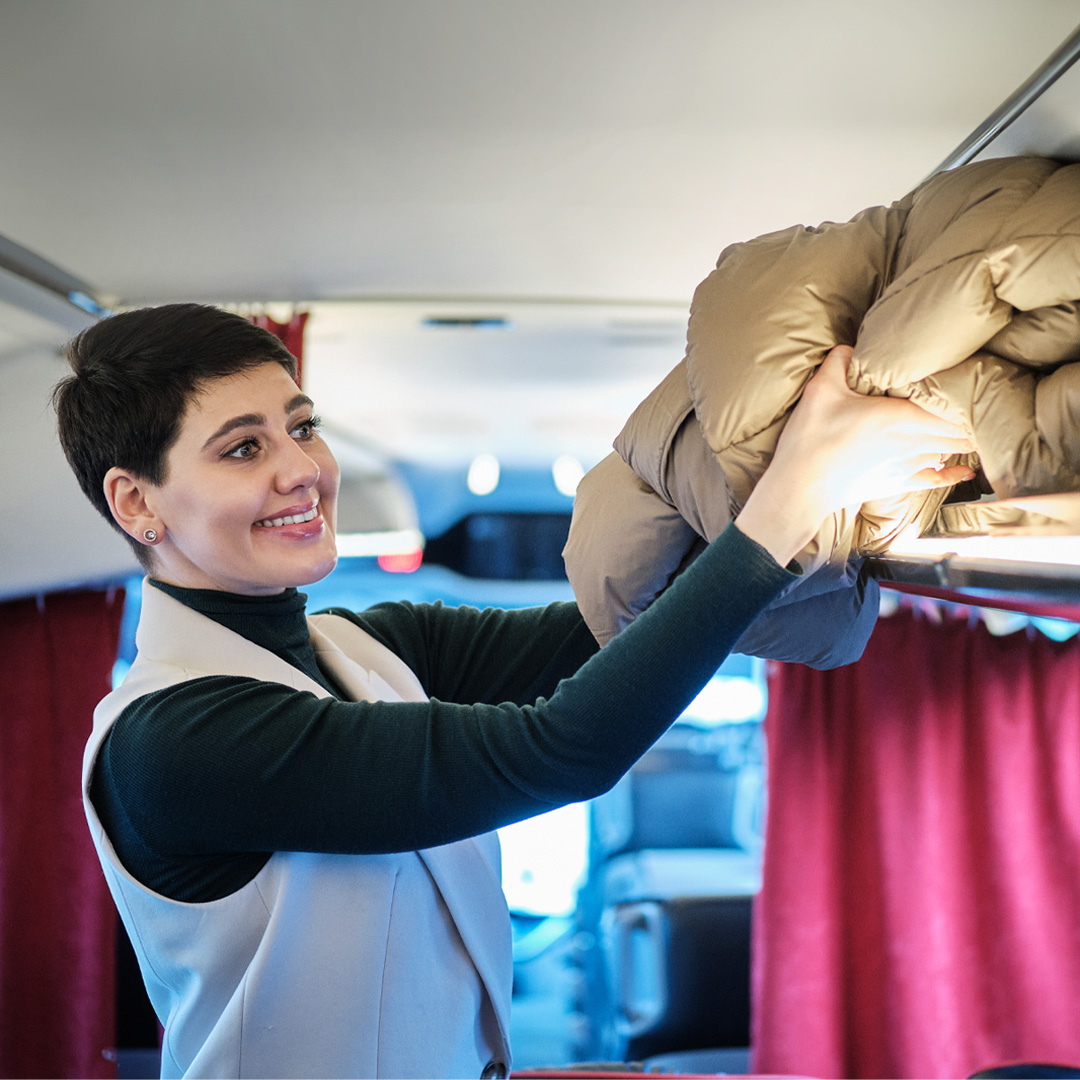 Suur pagas kuulub pagasiruumi, mitte vahekäiku või istme ette. Nii on bussis rohkem ruumi ja vähendad riski, et midagi sõidu ajal ümber kukub või kedagi vigastab.